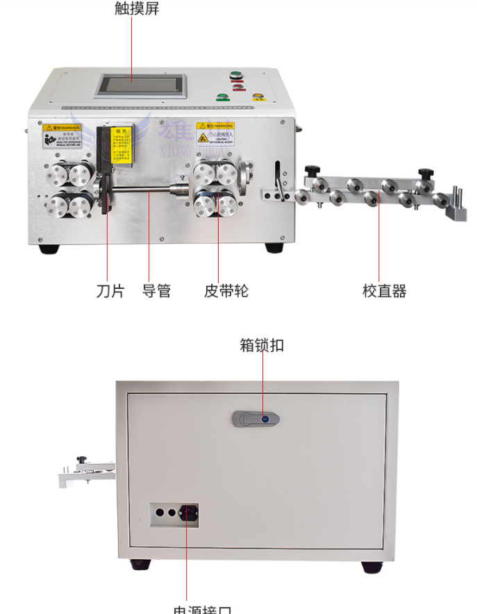 3、彩色触摸屏操界面,各项参数直观易懂,只需简单培训即可快速操作本机;本机还具有三层剥线程序,可以分三层剥皮,或是剥皮长度较长时最多分三次剥皮;提供100组程序记忆功能,可将不同线材的加工参数存储在不同的程序号中。